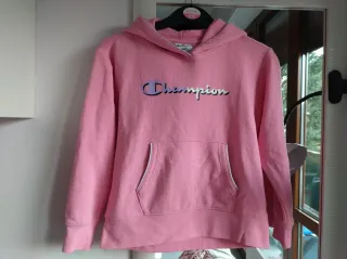 Felpa rosa con cappuccio per bambina Champion. Presenta il logo Champion sul davanti e una tasca a marsupio. - Colore: Rosa - Logo Champion Taglia Small 7-8 anni
