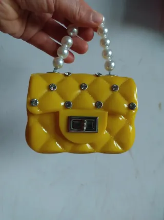 Mini borsa per bambina, un accessorio divertente e alla moda. Original Marines - Manico con perle. - Dettagli con strass. - Chiusura a scatto argentata.