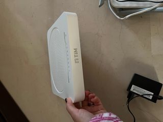 Modem bianco con alimentatore. - Design moderno con fori per la ventilazione. - Indicatore LED frontale.