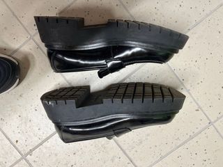 Eleganti mocassini neri con suola platform. - Tomaia lucida. - Dettaglio con fibbia. - Suola spessa e carrarmato.