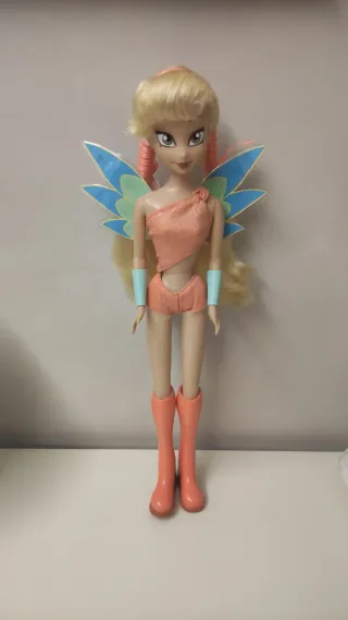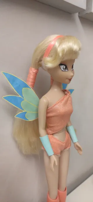 Bambola Winx Stella fata base 2004. In ottime condizioni. Le ali sono custom, però come si può vedere dalla foto in cui vengono sovrapposte alle ali originali, hanno la stessa dimensione. Il velcro al quale si attaccano le ali ha perso aderenza, le ali tuttavia si mantengono comunque attaccate .Al pantaloncino mancano pochi brillantini. Trovate altre Winx nel mio armadio