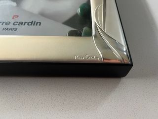 Elegante cornice portafoto Pierre Cardin, un tocco di classe per le tue foto. - Design raffinato con decorazioni floreali. - Dettagli in pietre verdi naturali. - Finitura color argento.