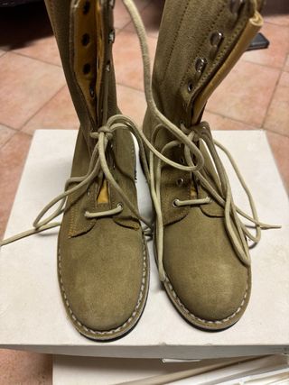 Stivaletti desertici in camoscio, mai indossati. - Materiale scamosciato. - Allacciatura frontale con lacci. - Fodera interna in pelle. - Suola in gomma.