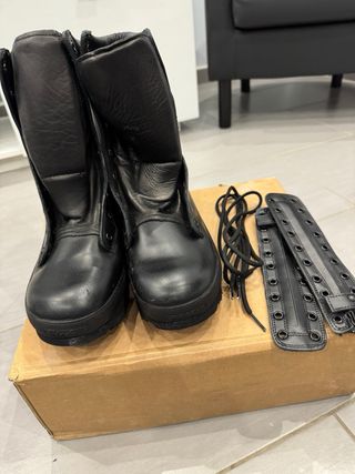 Stivaletti anfibi in pelle, ideali per piloti di elicotteri. - Modello alto. - Chiusura con lacci e occhielli. - Suola in gomma resistente.