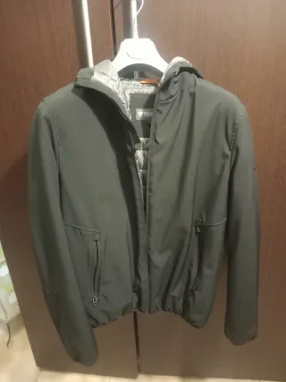 Giaccone da uomo in ottime condizioni. Le misure sono visibili nelle foto. - Chiusura con zip. - Tasche frontali con zip. - Cappuccio integrato.
