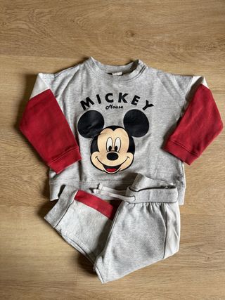 Comoda tuta per neonato con stampa di Mickey Mouse. Ideale per i più piccoli. - Grigio con maniche e inserti rossi. - Stampa di Mickey Mouse sul davanti. - Pantaloni con elastico in vita e laccetti.