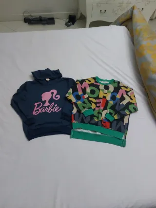Set composto da due felpe per bambina, taglia 9-10 anni. Felpa blu con stampa Barbie (ottime condizioni). Felpa colorata con stampa di lettere (presenta qualche macchiolina come da foto). #setbambina #setmagliette #setmaglie #bambina #abbigliamentobambina #abbigliamentobimba #bambina9anni #bambina10anni #10ans #10annibambina #10anni