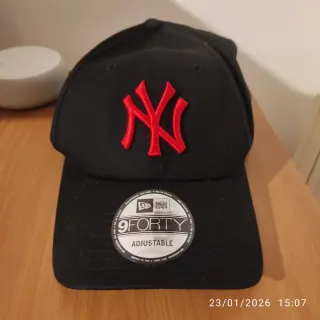 Cappello New Era con logo NY. - Colore nero con ricamo rosso. - Logo New Era sul lato.