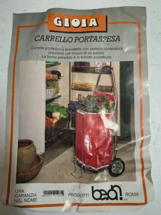 Carrello porta spesa GIOIA, un modello brevettato con cestello contenitore. - Cestello contenitore chiudibile con pedale. - Borsa estraibile in tessuto plastificato. - Design con ruote per facilitare il trasporto.