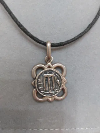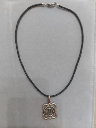 Elegante collana Gerardo Sacco con pendente. - Ciondolo decorato con motivo floreale. - Cordino nero intrecciato.