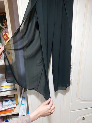 Tuta elegante da donna, taglia S/M. Presenta sia bretelle che passanti cintura per essere impreziosita. Il pantalone è di velo nero trasparente con al di sotto un pantaloncino, aperto lungo tutta la gamba. Indossata in una sola occasione. MADE IN ITALY. #tutadonna #tutaintera #tutaelegantedonna #tutaelegante #tutaneraelegante #tutanera #bay #madeinitaly
