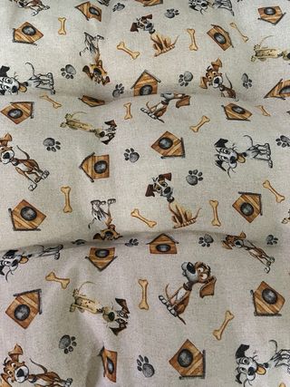 Cuscino per cani di grandi dimensioni con una divertente fantasia. - Dimensioni: 80x130 cm. - Fantasia con immagini di cani e ossa.