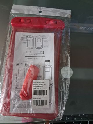 Vendo custodia impermeabile per telefono, nuova. - Colore rosso. - Chiusura ermetica. - Include laccio per il collo.