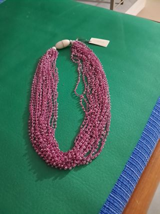 Bellissima collana realizzata a mano con perline viola. - La collana è composta da numerose file di piccole perline. - Chiusura con elemento in materiale chiaro. - Perfetta per aggiungere un tocco di colore a qualsiasi outfit.