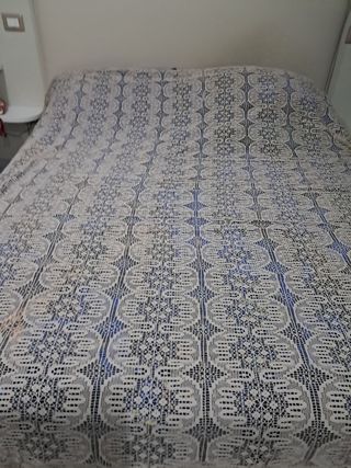 Bellissima coperta matrimoniale in pizzo beige, realizzata in cotone. Perfetta per aggiungere un tocco di eleganza alla tua camera da letto. - Misure adatte a letto matrimoniale - Motivo floreale - Ottimo stato