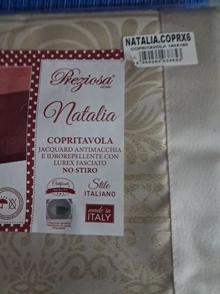 Bellissima copritavola Preziosa Natalia, ideale per le feste natalizie. cm 120 x 140 - Colore beige - Tessuto effetto jacquard. - Antimacchia e idrorepellente. - Con lurex. - Non necessita di stiro.