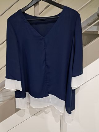 Elegante casacca da donna con un design a strati. - Scollo a V. - Maniche a tre quarti. - Orlo asimmetrico.