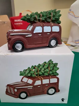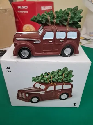 Deliziosa macchinina a tema natalizio, perfetta per decorare. - Design a forma di auto d'epoca. - Albero di Natale decorativo sul tetto.