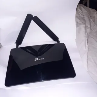 Router TP-Link di colore nero con due antenne esterne. - Design elegante e moderno. - Logo TP-Link visibile sulla parte frontale. Lho usato per due anni ....avrà tre anni di vita...una figata....basta mettere una scheda telefonica...e puoi connettere quello che vuoi.... Tenuto molto bene bene Vedi foto
