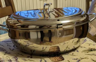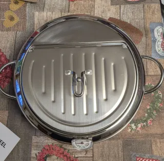 Pentola per friggere in metallo, perfetta per la tua cucina. - Design elegante e funzionale. - Manici robusti per una presa sicura. - Coperchio con griglia per scolare il fritto e termostato