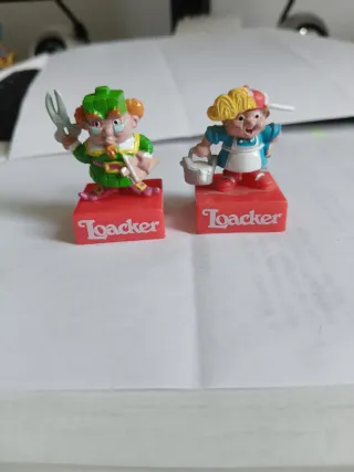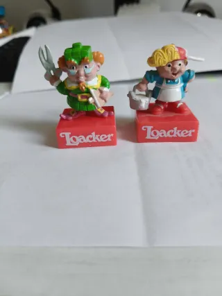 Due simpatiche statuine Nani della serie Loacker 2000. - Personaggi colorati. - Base rossa con logo Loacker. Ideali per terminare con lezioni