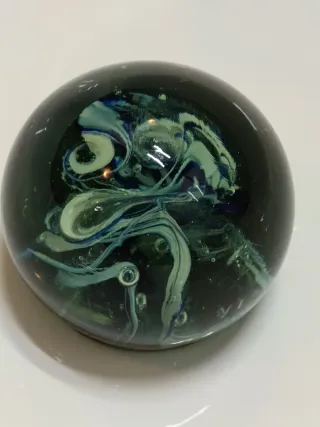Bellissimo fermacarte in vetro artistico, risalente agli anni '50/ '60. Un pezzo unico che aggiunge un tocco di eleganza. - Realizzato in vetro artistico blu, azzurro , bianco,con base piatta. - Design d'epoca anni '50/'60. _ Attribuito a Chris Pantano. _ Misura altezza cm 7 diametro 8 cm....