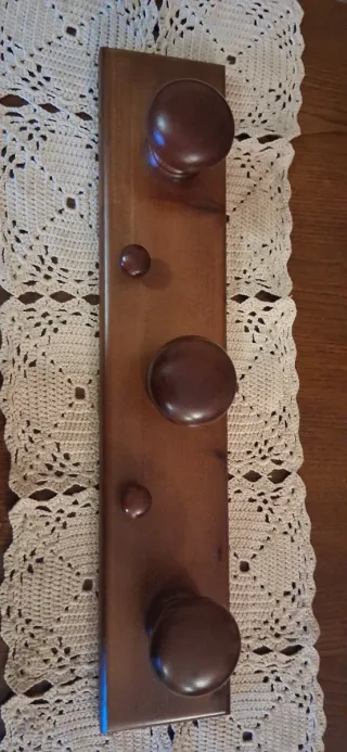 Appendino da muro con pomelli in legno. - Design semplice ed elegante. - Perfetto per appendere cappotti, borse o altri accessori. - Aggiunge un tocco rustico alla tua casa.