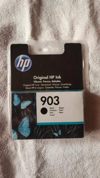 Cartuccia d'inchiostro originale HP 903 per stampanti. ORIGINALE Colore: Nero. Come potete vedere dall'ultima foto, è possibile acquistare tutte e 4 le cartuccie( magenta, giallo, nero, turchese) Sul sito HP viene venduta a 26 euro + spese di spedizione, io la vendo a 20.