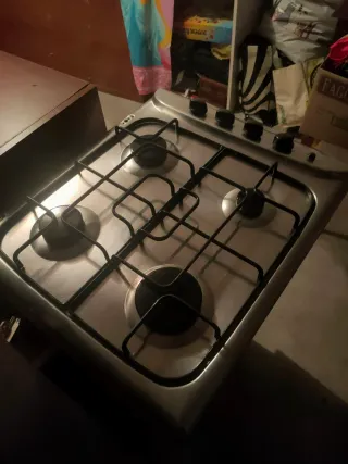 Piano cottura a gas con quattro fuochi, ideale per la cucina. - Superficie in acciaio inossidabile. - Griglie in ghisa. - Manopole per la regolazione del gas. - Marca: indesit Buono stato d'uso, non presenta macchie ne graffi importanti. Vendo con il tubo del gas incluso.