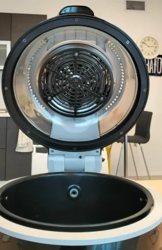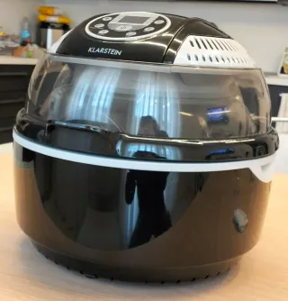 Friggitrice ad aria Klarstein VitAir 1400W 10L in ottime condizioni, perfetta per cucinare in modo sano. Coperchio trasparente per controllare la cottura. Pannello di controllo digitale, cestello centrale estraibile per facile pulizia. Presenti un paio di segni come da foto. Manca manuale d'uso scaricabile dal sito del produttore. Misure 44x35x30