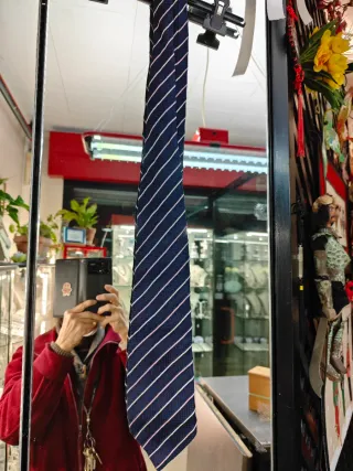 Elegante cravatta in pura seta, perfetta per completare un outfit raffinato. - Fantasia a righe diagonali. - Tessuto in seta al 100%.