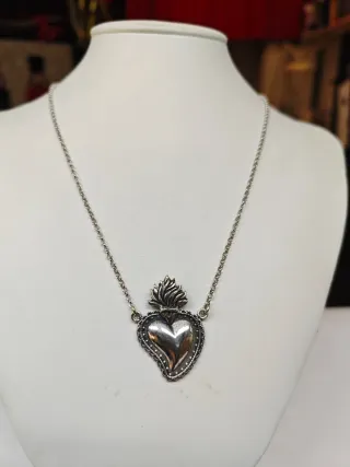 Collana con pendente a forma di Sacro Cuore. - Materiale: Argento 925 - Design: Sacro Cuore di Gesù