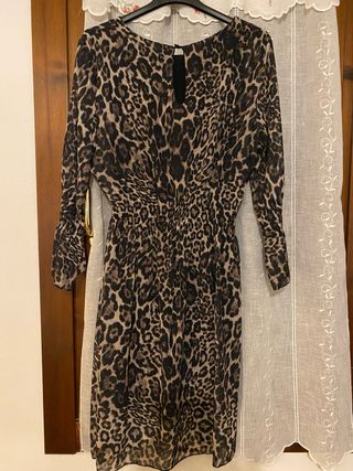 Vestito con stampa animalier. La vita è elasticizzata per una vestibilità comoda. - Maniche lunghe. - Tessuto leggero e fluttuante - usato una volta