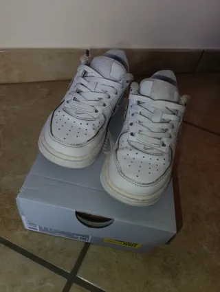 Scarpe Nike Air Force per bambini. - Design classico. - Tomaia in pelle bianca traforata. - Chiusura con lacci. - Taglia 28.5. - Utilizzate ma in ottime condizioni.