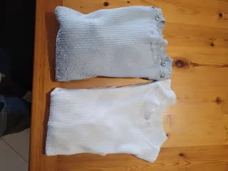 Set di due maglie dolcevita. - Una maglia grigia con bottoni. - Una maglia bianca.