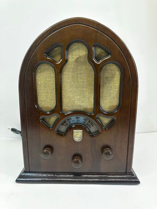 Radio della Philips in fm e om Modello 2550/00 Riproduzione di un modello di radio degli anni 30 Funzionante come da video che può essere visionato sul mio canale YouTube 19salvo62 oppure su richiesta posso inviare il link diretto Più che ottime le condizioni estetiche, priva di graffi o rotture Telaio in legno Misura 25x 18 x 31 cm circa Le foto sono parte integrante della descrizione