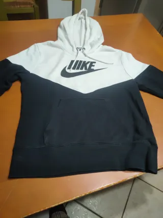 Felpa con cappuccio Nike, perfetta per le giornate più fresche. - Design bicolore bianco e nero. - Logo Nike sul petto. - Tasca a marsupio. - Cappuccio con laccetti.