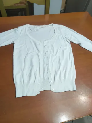 Elegante coprispalle in pizzo bianco, perfetto per aggiungere un tocco di stile. - Design in pizzo floreale. - Maniche a tre quarti. - Chiusura frontale con bottoni.