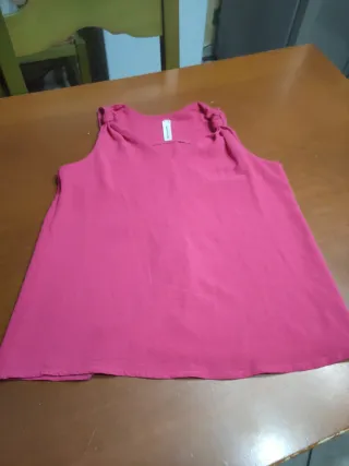 Canotta da donna in un vivace colore rosa. Il design presenta dettagli arricciati sulle spalle. - Scollo rotondo. - Tessuto morbido al tatto.
