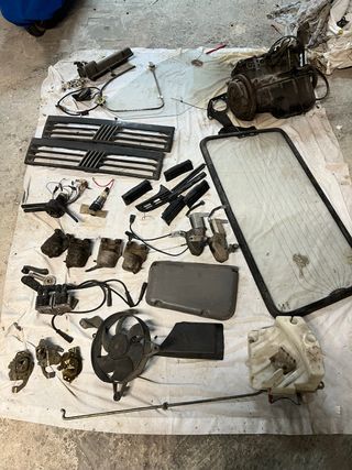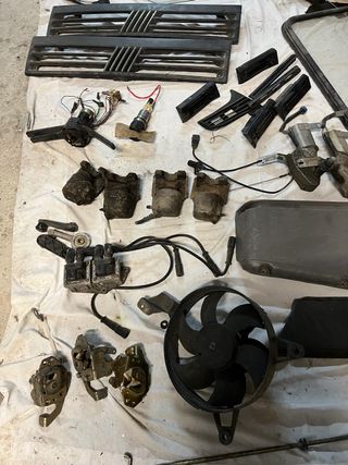 Blocco ricambi panda 4x4 141 anno 2001. Elenco con prezzi: Lunotto posteriore 80€ Bobina accensione con fili 30€ Coperchio punterie 40€ Sensore fase 10€ Monoblocco senza testata panda 1100ie 100€ Devioluci 2 connettori 20€ Cornice presa d’aria 20€ Tasca SX 10€ Pinze pasticche 25€ Tromba FIAMM €5 Vaschetta acqua tergicristallo (tappo mancante) €20 Motorino tergicristallo posteriore €20 Sonda lambda €25 Motorino gallegiante €30 Ritiro zona Caserta o possibilità di spedizione