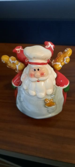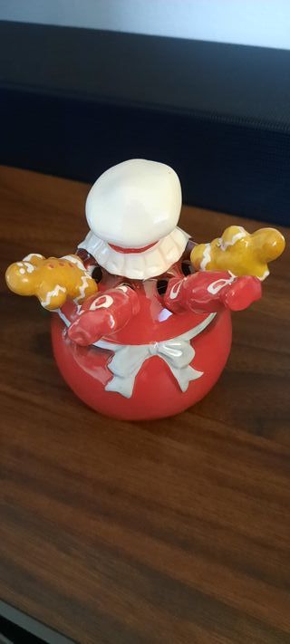 Simpatico babbo Natale in ceramica porta forchettine per aperitivi/stuzzichini. I manici delle forchettine sono in resina dura. Mai utilizzato. Senza scatola. Dimensioni: - larghezza 7,5 cm.; - altezza 9 cm.; - profondità 7,5 cm.