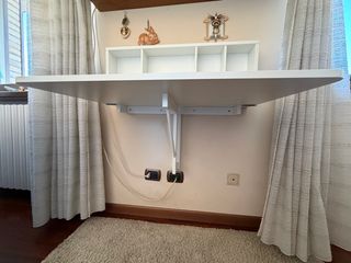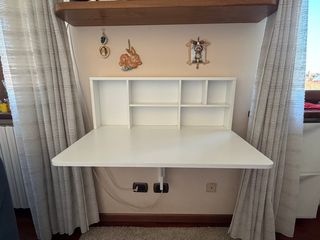 Pratica scrivania a scomparsa, perfetta per ottimizzare gli spazi. - Struttura in legno e plastica. - Colore bianco.
