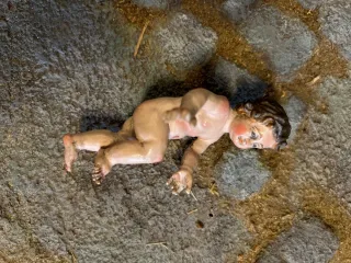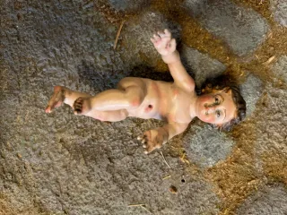 Piccolo bambinello in legno, ideale per presepi o decorazioni. - Realizzato in legno. - Dettagli dipinti a mano. In legno con occhi di vetro 11 cm Vera opera d arte