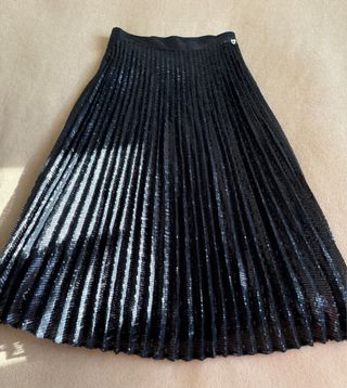 Splendida gonna lunga con paillettes. Foderata, indicata la tg 46 controllate le misure per favore Misure: Vita 40 cm Lunghezza 89 cm - Gonna a pieghe. - Tessuto con paillettes.