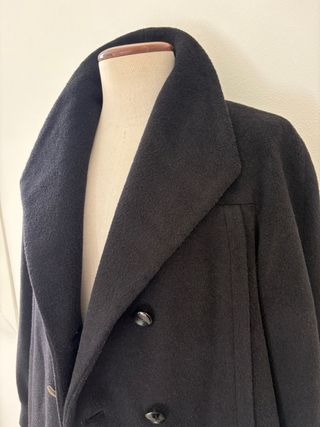 Pesante e caldo , è stato nel armadio da anni - serve una pulitura rinfrescante. Fatto in sartoria in Italia, il tessuto è sicuramente lana , veste una L-XL, foderato, con spalline. Attenzione su imperfezioni indicate ( parte fodera - invisibile da esterno), le macchie vanno via dopo il lavaggio. Misure: Spalle 47 cm Ascelle 58 cm Lunghezza 116 cm Manica 61 cm