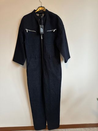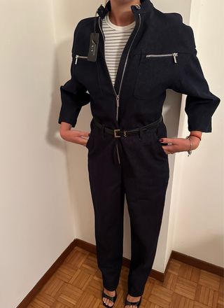 Tuta intera in denim di Armani Exchange, un capo versatile e di tendenza. - Chiusura frontale con zip. - Tasche laterali con zip. - Design utility.